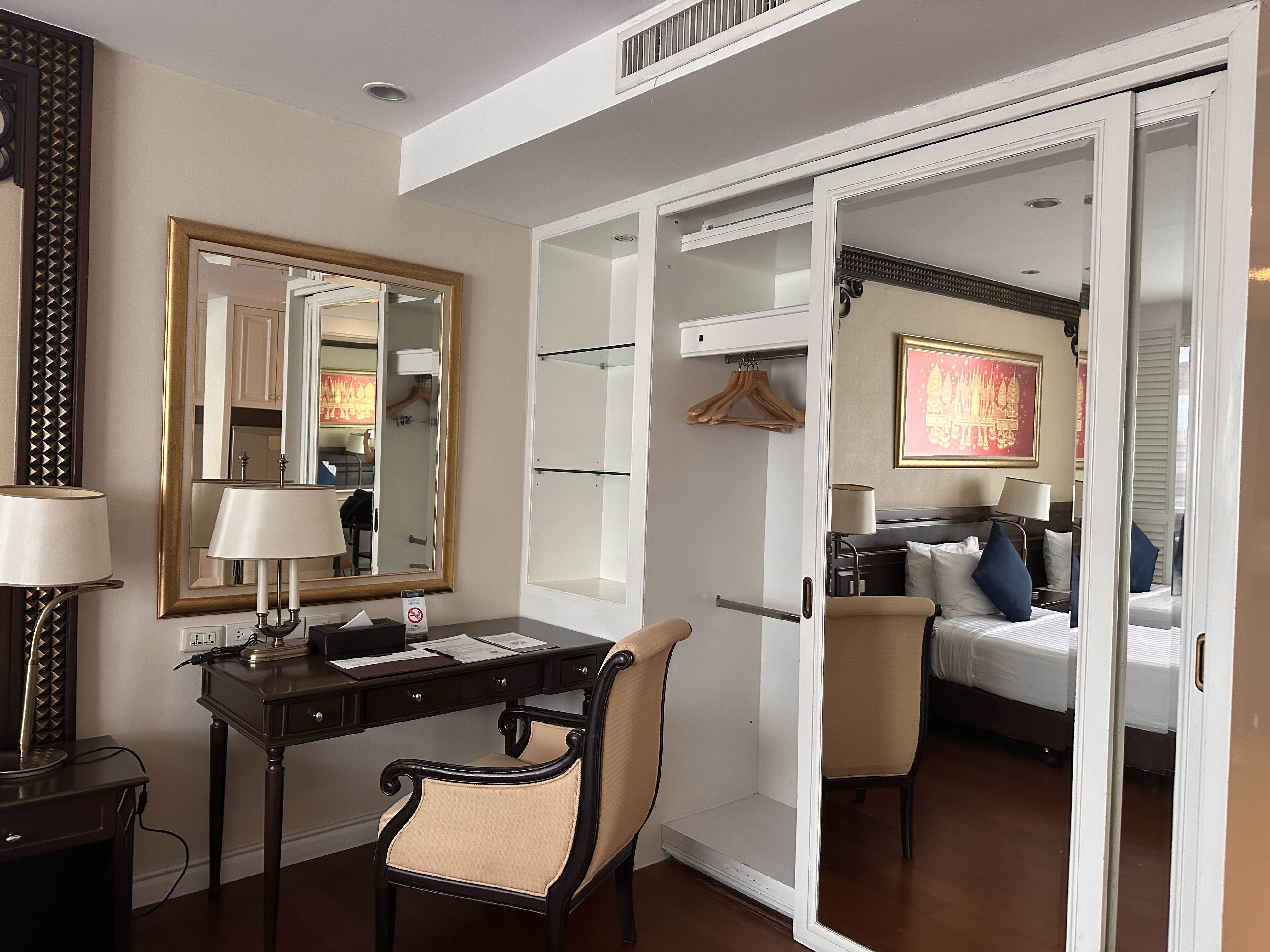 룸 컨디션은 후기들에 비해 나쁘진 않았던 것 같아요. 다른 호텔들과 달리 공간이 엄청 넓어서 캐리어 두 개를 다 펼쳐놔도 공간이 남아돌고 거울이 많아서 정말 좋았어요 화장할 때도 편하고 전신 거울이 있어서 옷 코디할 때도 유용하게 사용했네요.